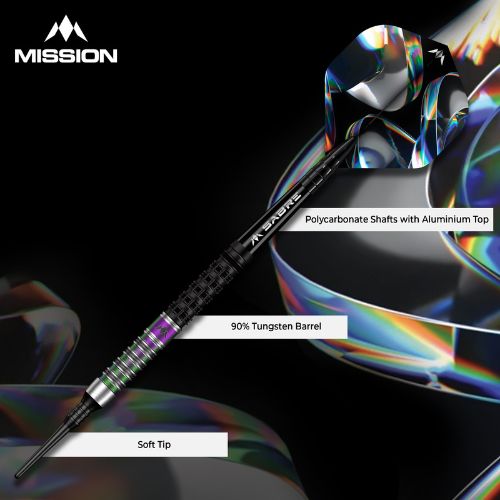 Set vključuje črne MISSION Sabre nastavke, ki trdno držijo Celestial peresa z motivom vesolja.