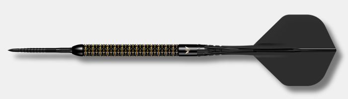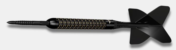 MISSION Mike De Decker - World Grand Prix - Limited Edition – ekskluzivni steeldart komplet (501 kosov) iz 95 % volframa z zlato elektro-prevleko in črno PVD površino.