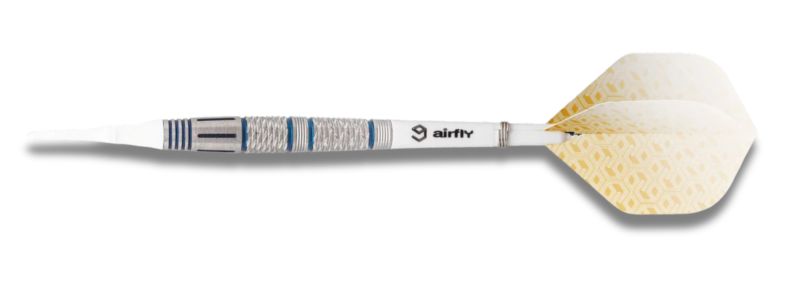 Model Caliburn Jade Soft Tip se ponaša s torpedasto obliko barela, izdelanega iz 90 % volframa, ki zagotavlja izjemno ravnotežje in natančnost pri metu. Barel odlikuje obročasti vzorec z dodatnim rezkanjem za še boljši oprijem, medtem ko električno moder nanos prispeva k sodobnemu in prepoznavnemu videzu.