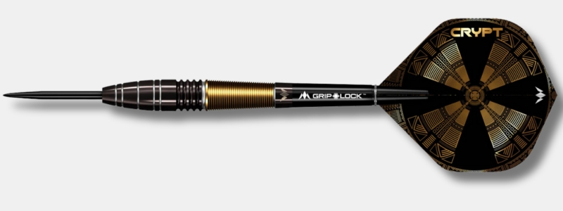 Mission Crypt steeldarts združujejo inovativno oblikovan barrel z natančnim mikrorezom na zadnjem delu, črno-srebrno PVD-prevleko spredaj ter zlato PVD-prevleko na zadnjem delu.
