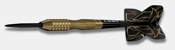 Puščice so izdelane iz 90 % volframa in imajo popolnoma premazan barrel z bronasto (gold) PVD prevleko, ki združuje eleganten videz in zaščito pred obrabo. Barrel je zasnovan v sodelovanju z igralcem in vključuje več različnih grip con, zato je primeren za igralce, ki prijemajo puščico na različnih mestih.