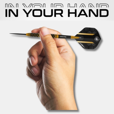Winmau Vecta shafte (Short, Black & Gold) in extra thick 100-micron flighte.