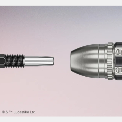 STAR WARS™ | TARGET Darth Vader Lightsaber First Edition je poklon temni strani moči in vrhunski izdelavi. 95 % volframov barrel z natančnimi večosnimi rezi in laserskimi gravurami (Vaderjeva prsna plošča, čelada) združuje estetiko svetlobnega meča in tekmovalni oprijem. Globoka črna PVD-prevleka poudari vizual in doda trpežnost ter kontrolo.